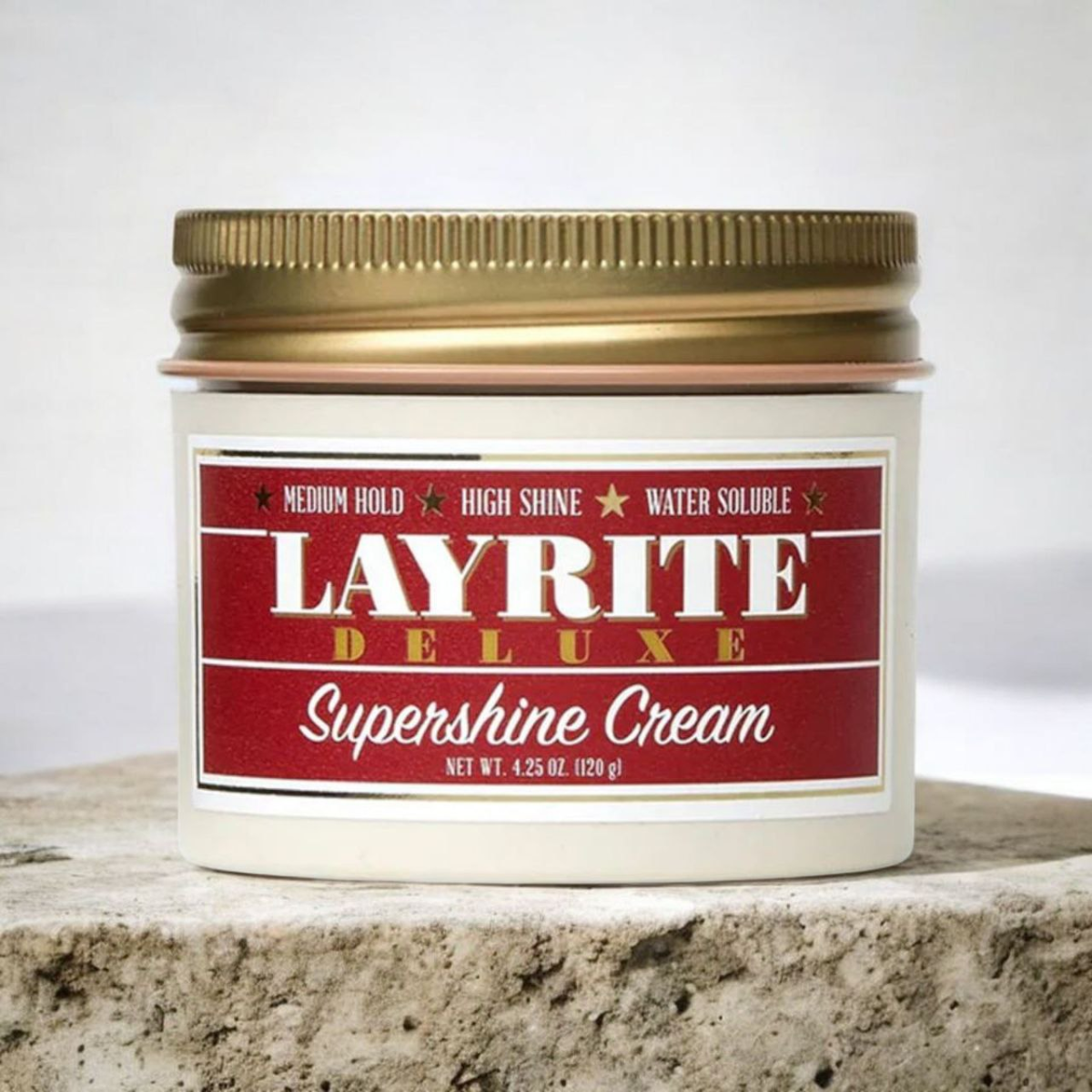 Layrite Deluxe Super Shine Cream - это крем на водной основе, который даст средний уровень фиксации и максимальный блеск, без которого трудно представить классическую укладку в ретро стиле типа помпадур и т.д.