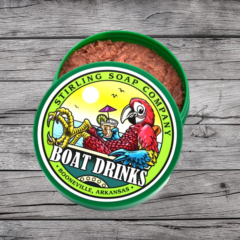 Мыло для бритья Stirling Boat Drinks - это эффективное мыло для бритья с натуральными ингредиентами, такими как говяжий жир, растительный глицерин, масло ши и кокосовое молоко. Кроме того, мыло для бритья Stirling Boat Drinks содержит миндальное масло, ланолин, глину и другие натуральные ингредиенты, которые помогают смягчить бороду и щетину перед бритьем.