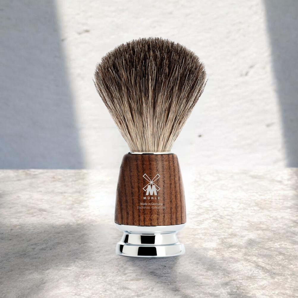 Muhle Rytmo 81 H 220 - помазок для бритья с натуральным барсучим ворсом. Натуральный барсучий ворс – отличный выбор для любителей влажного бритья, предпочитающих эффект массажа перед процедурой бритья. Помазок из натурального ворса производится механически. Ворс мягче, чем щетина кабана, но жестче, чем ворс категории Fine и, конечно, Silvertip. Цвет изменяется от коричнево-серого до черного.