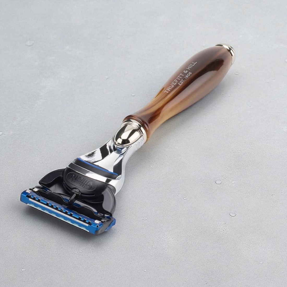 Станок для Бритья Truefitt & Hill Wellington Faux Horn Razor с изысканным роговым покрытием и бритвенной системой Fusion. Удобная ручка, классический дизайн.