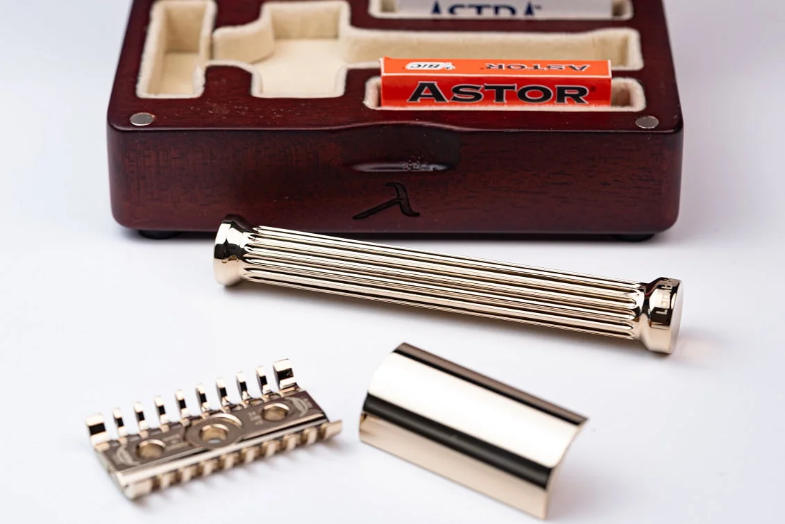 На всех станках Lambda Ares — уникальный серийный номер. Бритву поставляют в коробе из дорогой древесины с выгравированным логотипом бренда.