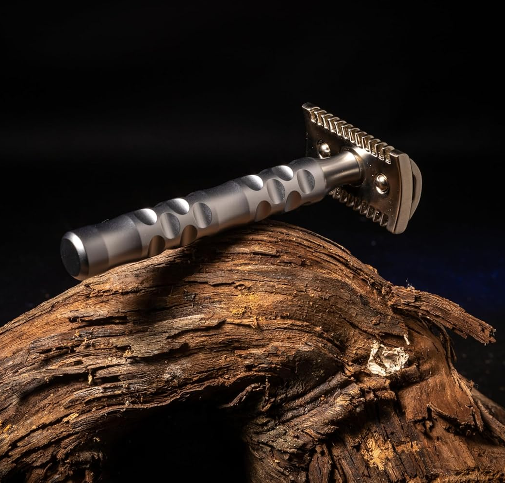Станок с агрессивностью, выше средней. Головка изготовлена из высококачественного литого цинка с сатинированной отделкой. Рукоятка из нержавеющей стали AISI 303 с твердым хромированием делает изделие устойчивым к царапинам, ржавчине и потенциально долговечным. Кроме того, классический, но изысканный дизайн делает эту безопасную бритву настоящей находкой и обеспечивает превосходное сцепление даже в крайне неблагоприятных условиях.